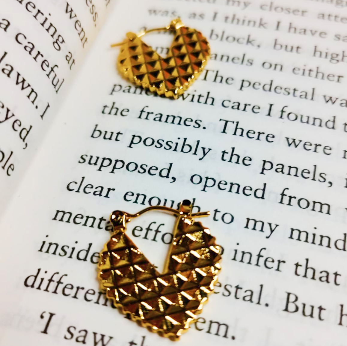 Unique heart-shaped hoop earrings with textured finish