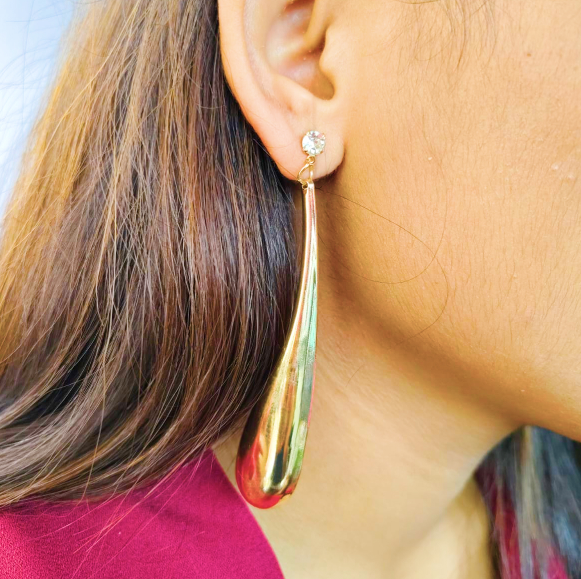 Pair these long earrings with a sleek bun or ponytail for a bold highlight.